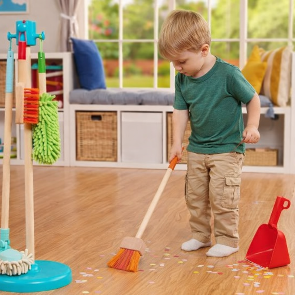 Some parents find that having a simple, child-sized cleaning setup keeps everything accessible and easy to use.