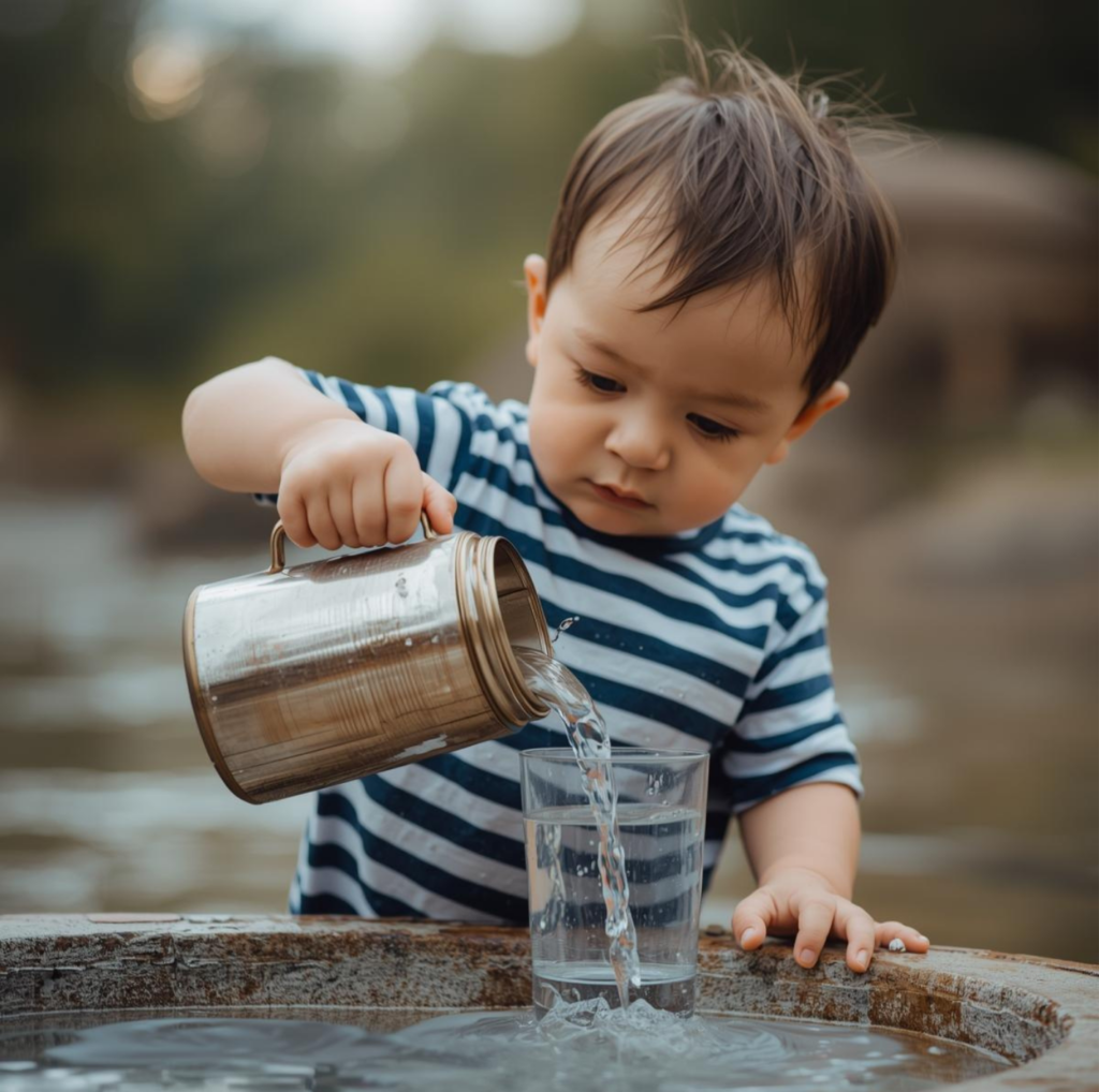 We personally prefer to avoid plastic where possible, so we often use small stainless steel barista jugs — they’re durable, easy to handle, and help toddlers slow their movements naturally.